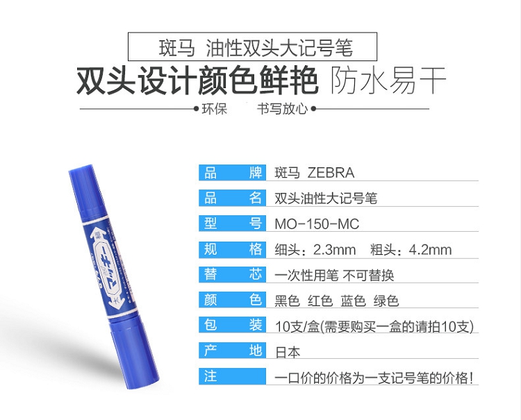 斑馬(ZEBRA) MO-150-MC-BK 大雙頭記號(hào)筆 1支裝 2.0~4.0mm (藍(lán)色)