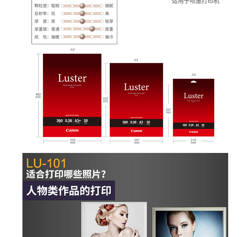 佳能(Canon) LU-101 專業(yè)絨面照片紙/相片紙 (A4/20張)