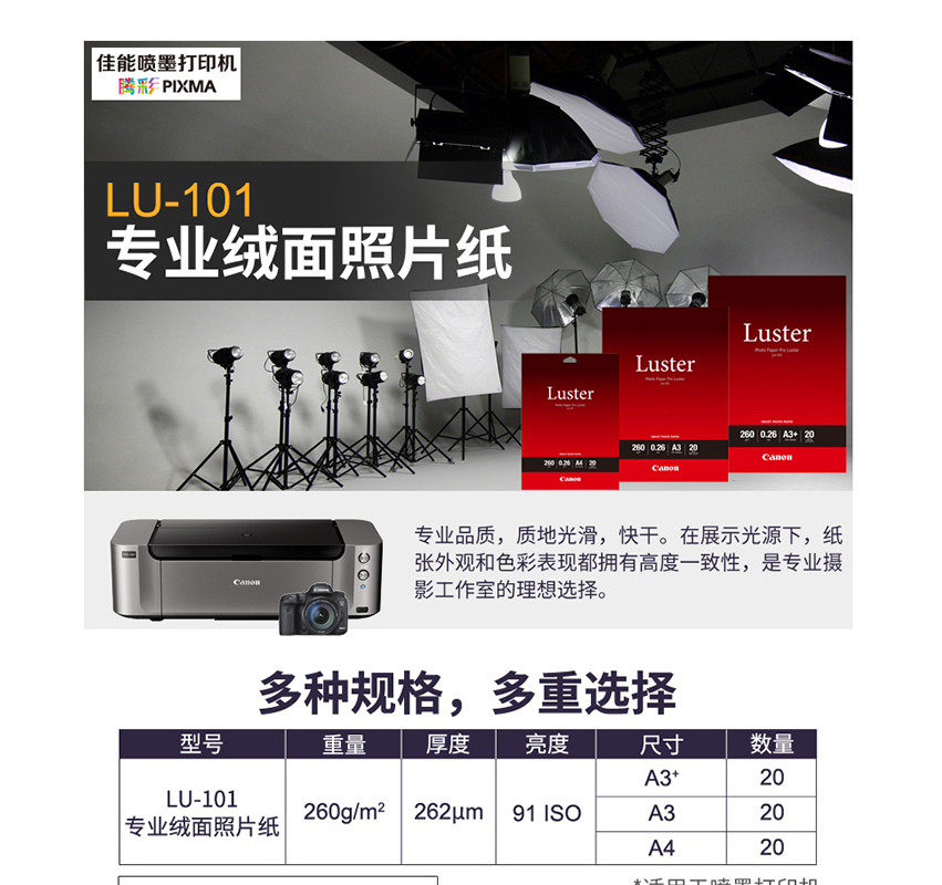 佳能(Canon) LU-101 專業(yè)絨面照片紙/相片紙 (A3+/20張)