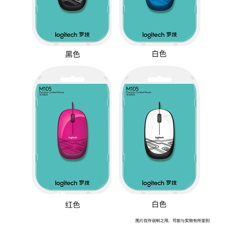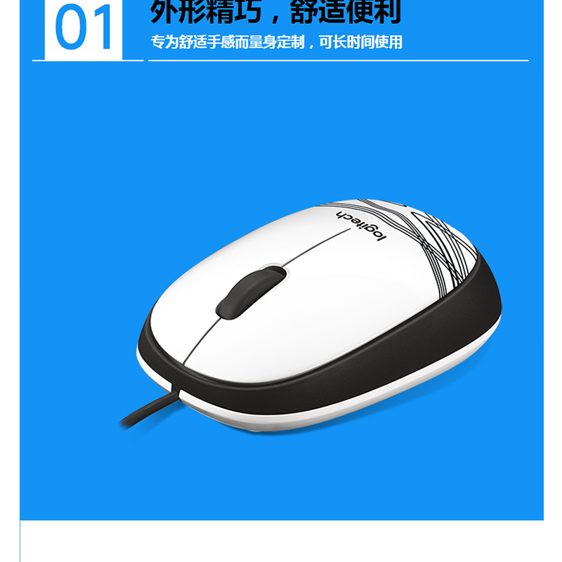 羅技(Logitech) M105 時尚多彩鼠標 左右手通用 (清新白)