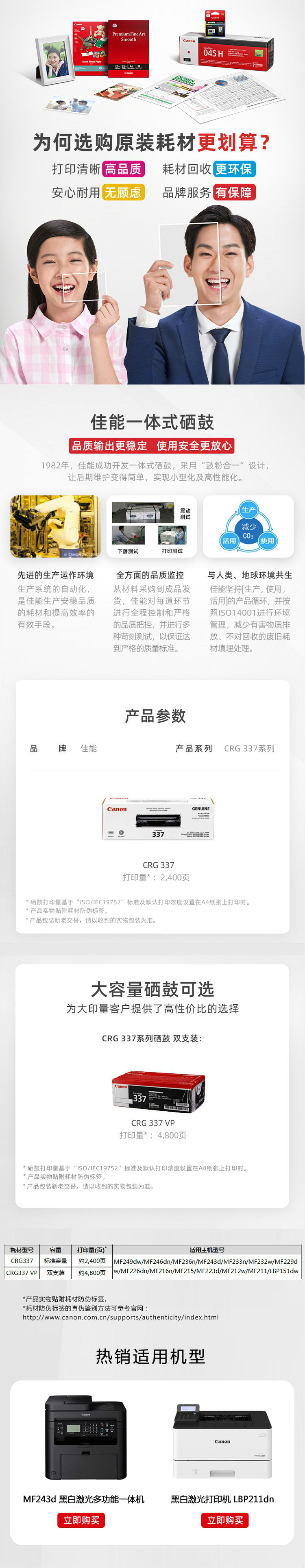 佳能(Canon) CRG-337 黑白打印機(jī)硒鼓 黑色