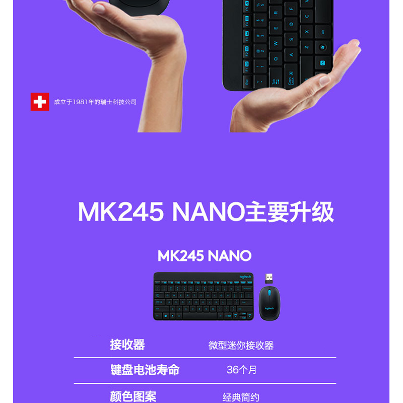 羅技(Logitech) MK245 Nano 無(wú)線鍵鼠套裝 小鍵盤(pán) (白藍(lán))