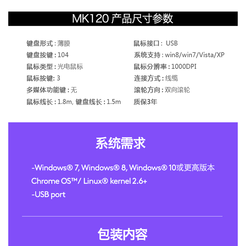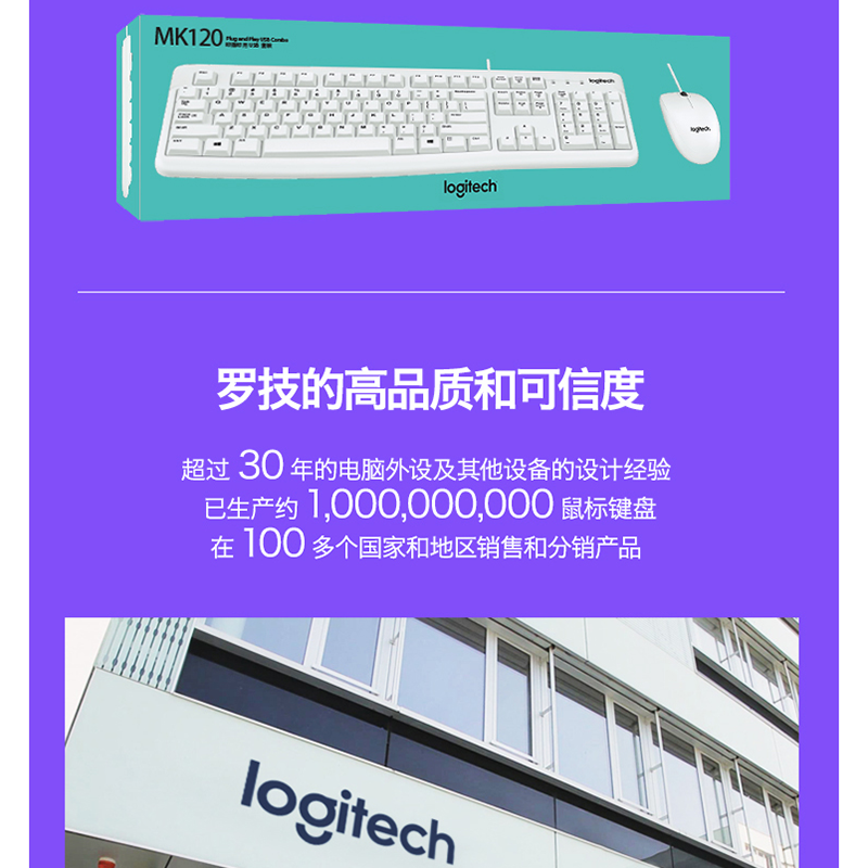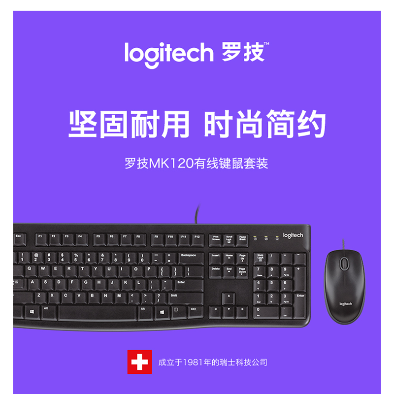 羅技(Logitech) MK120 鼠標鍵盤套裝 三年質保 (黑色)