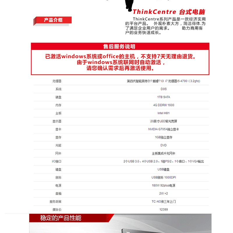 聯(lián)想(Lenovo) M7250z i5-4590S 商務(wù)辦公電腦一體機 20英寸寬屏 4G內(nèi)存 1T硬盤 1G顯卡