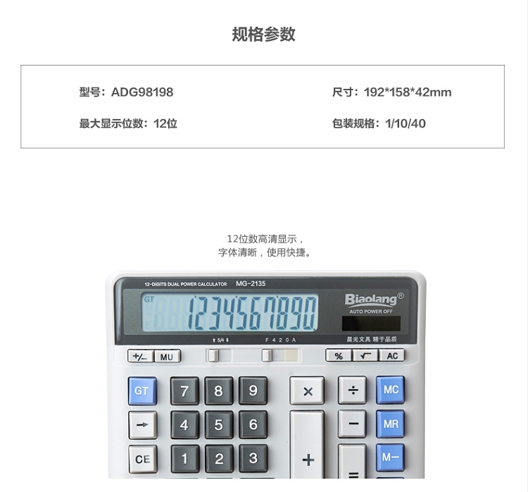 晨光(M&G) ADG98198 MG-2135 桌面電腦按鍵型計(jì)算器