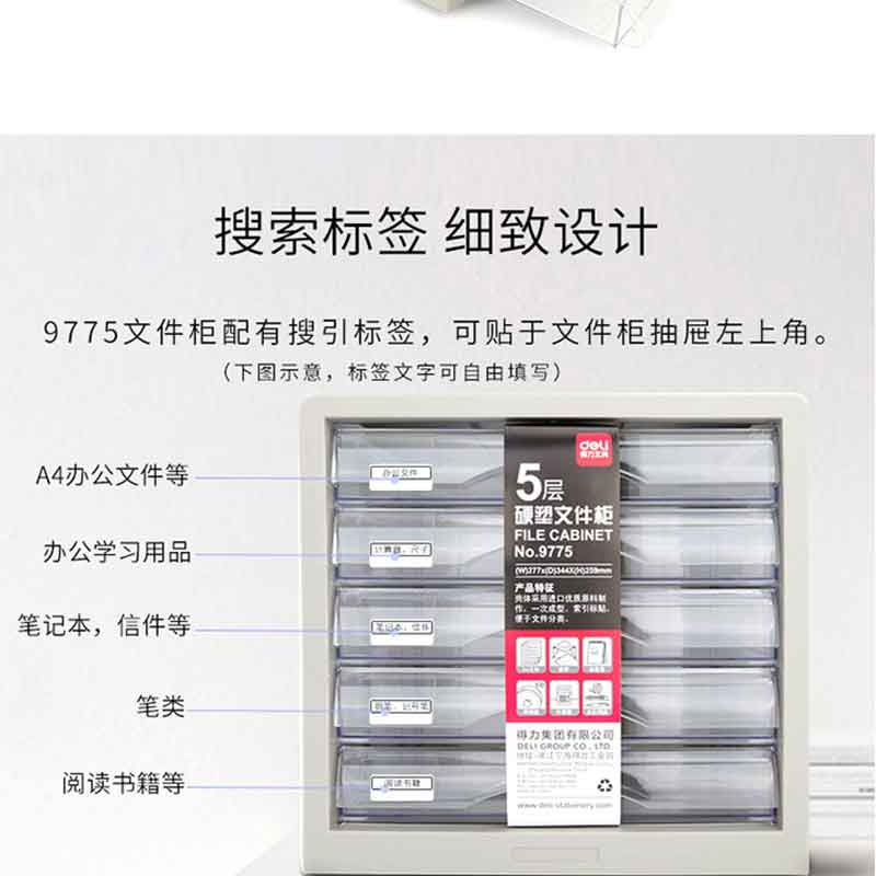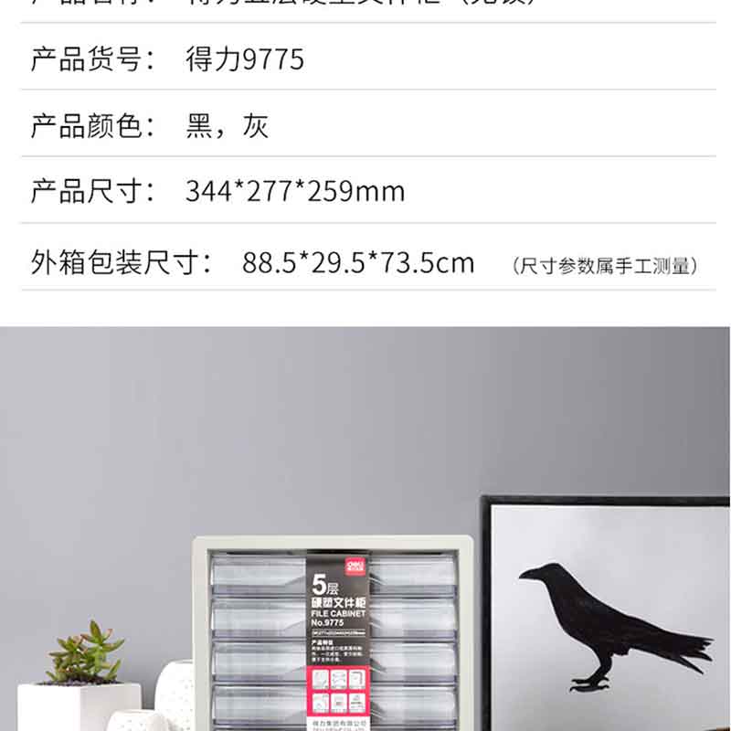 得力(deli) 9775 五層手拉桌面文件柜 帶索引標簽抽屜式資料柜(黑色)