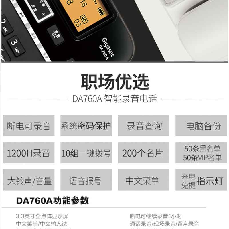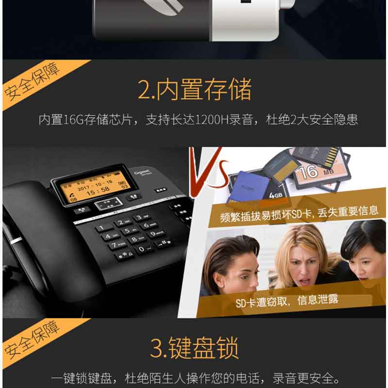 集怡嘉(Gigaset) DA760A 原西門子 錄音電話機(jī)/辦公座機(jī)可連電腦/中文輸入黑名單自動(dòng)報(bào)號(hào)/客服電話機(jī)家用固定電話座機(jī)(黑色)