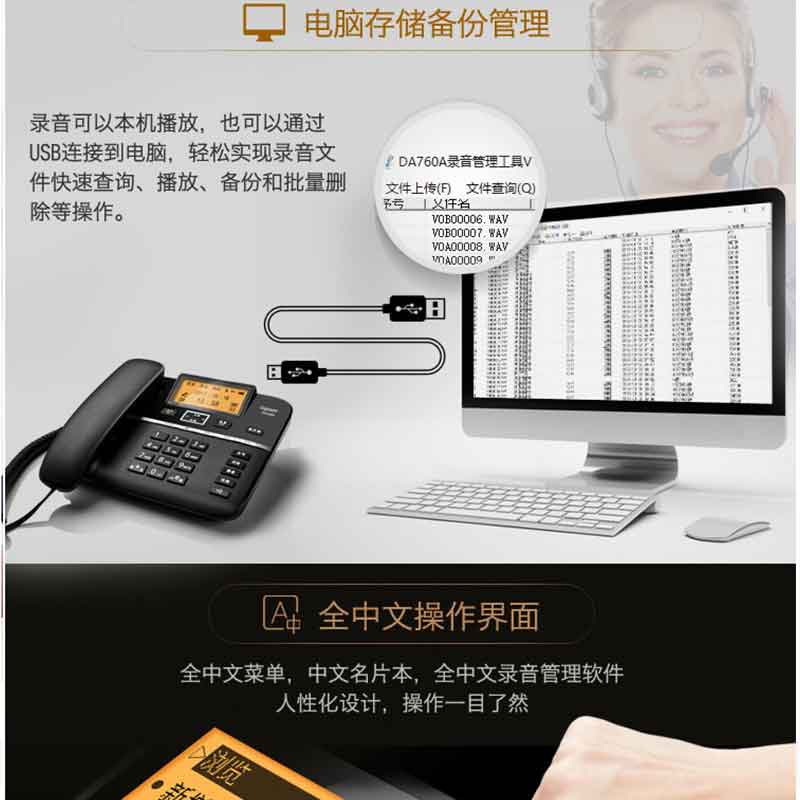 2018新品上市,全中文菜單,可設(shè)置自動(dòng)或手動(dòng)通話錄音/語音留言答錄/內(nèi)置存儲(chǔ)16G大容量安全加密/支持RJ9耳麥 ?