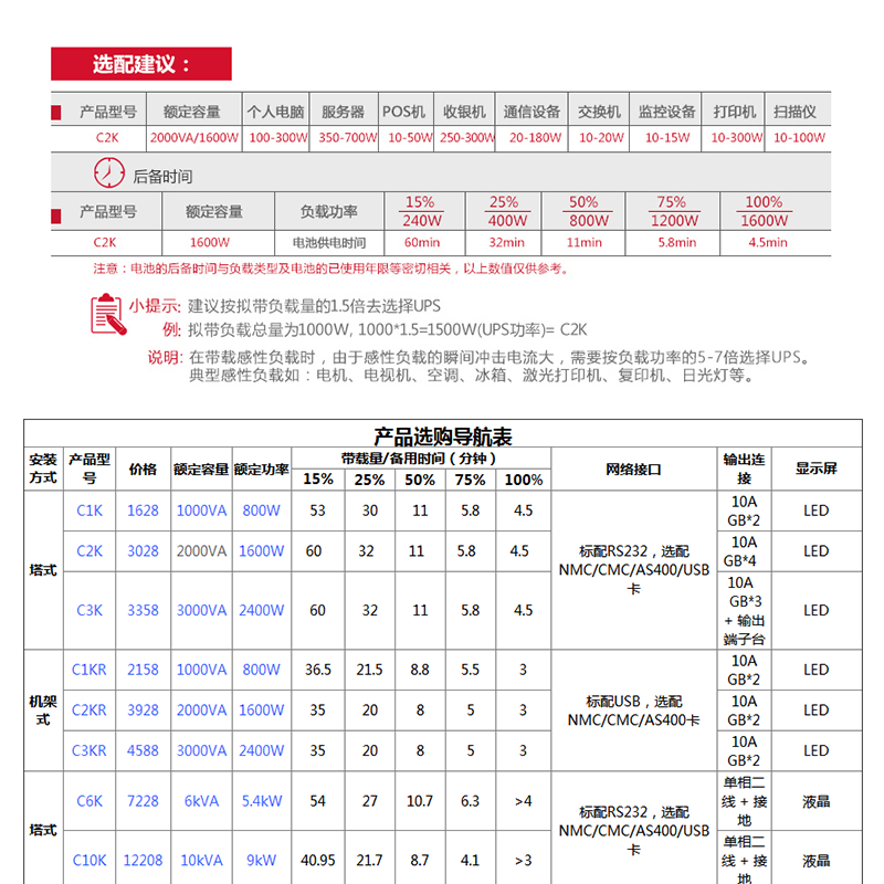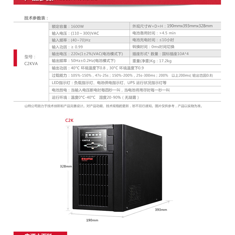 山特(SANTAK) C2K 在線式UPS主機(jī)不間斷電源穩(wěn)壓 (2000VA/1600W)