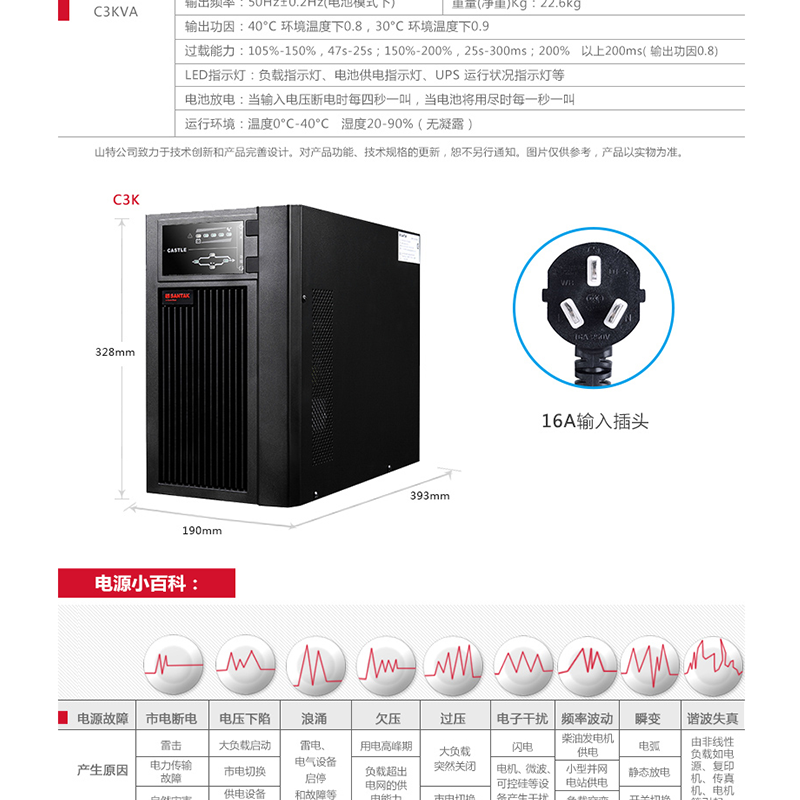 山特(SANTAK) C3K 在線式UPS主機(jī)不間斷電源穩(wěn)壓 (3000VA/2400W)
