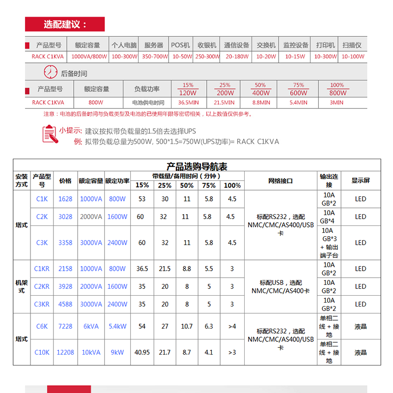 山特(SANTAK) C1KR 機(jī)架式UPS不間斷電源 (1000VA/800W)