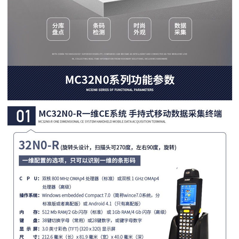 斑馬(ZEBRA) 手持式移動數(shù)據(jù)采集終端 條碼掃描PDA (MC32N0-R一維CE系統(tǒng))