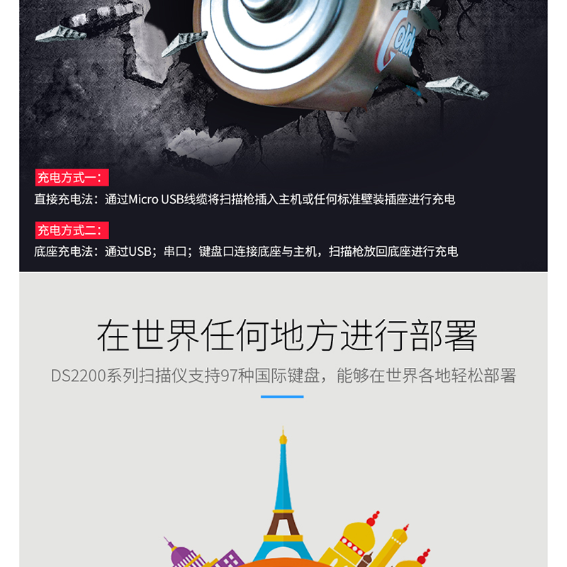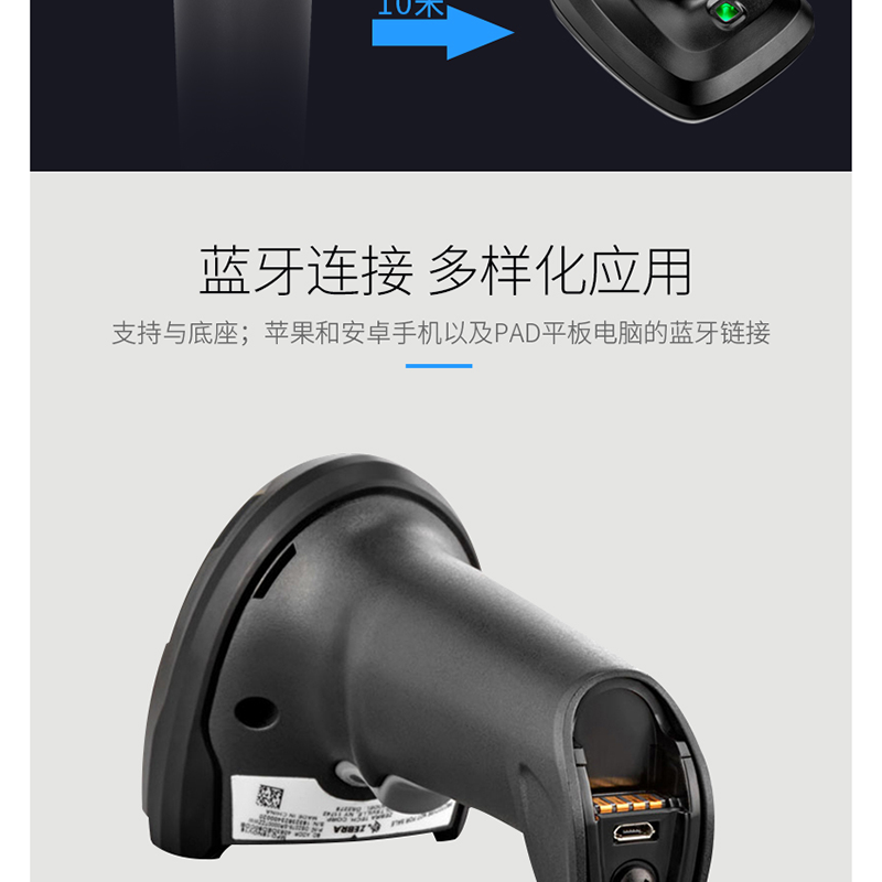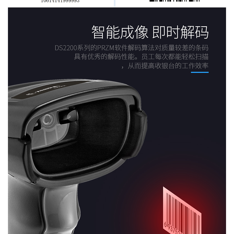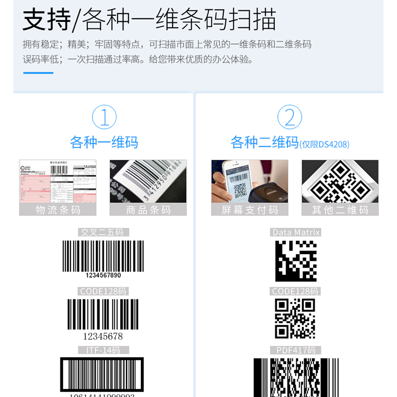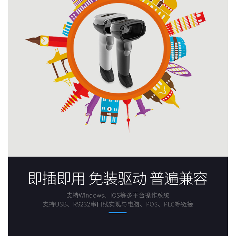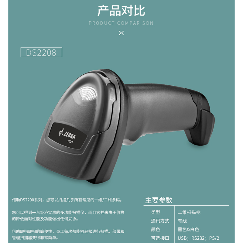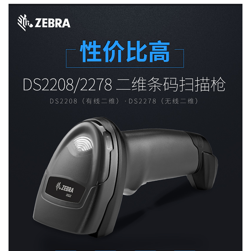 斑馬(ZEBRA) DS2208 二維碼/條碼掃描槍 微信支付寶收銀 (黑色帶架套裝)