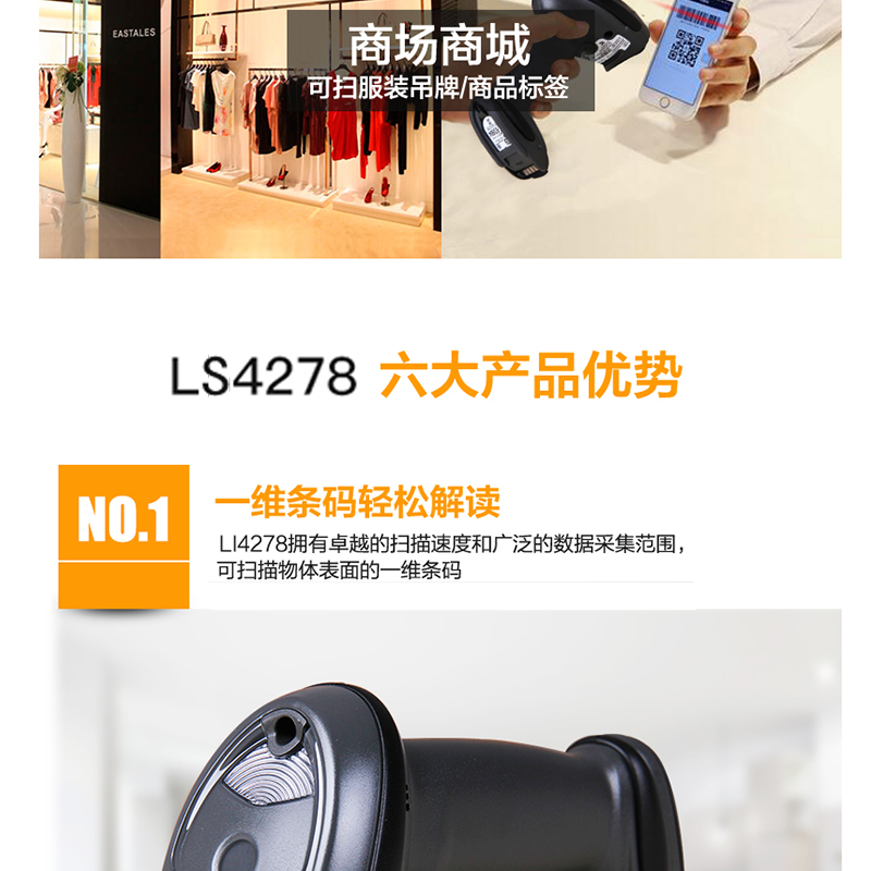 斑馬(ZEBRA) LS4278 無線掃描槍一維條碼掃描器 (單線激光掃描)