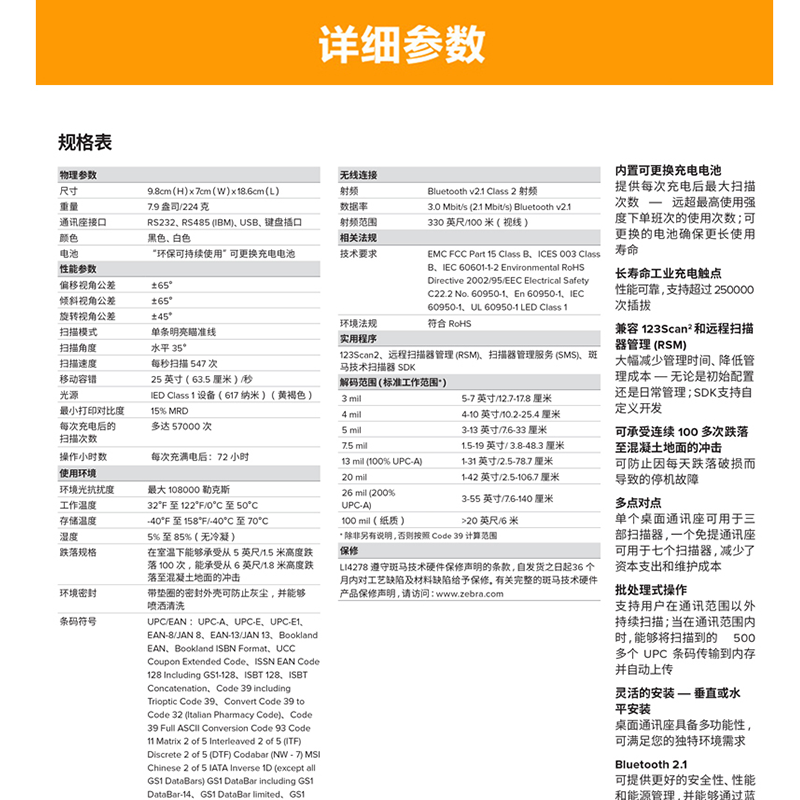 斑馬(ZEBRA) LI4278 無(wú)線掃描槍一維條碼掃描器 (影像式掃描)