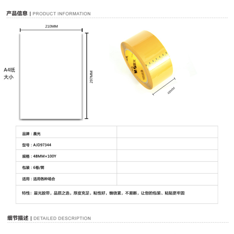 晨光(M&G) AJD97344 米黃色膠帶48mm*100y 6卷/筒