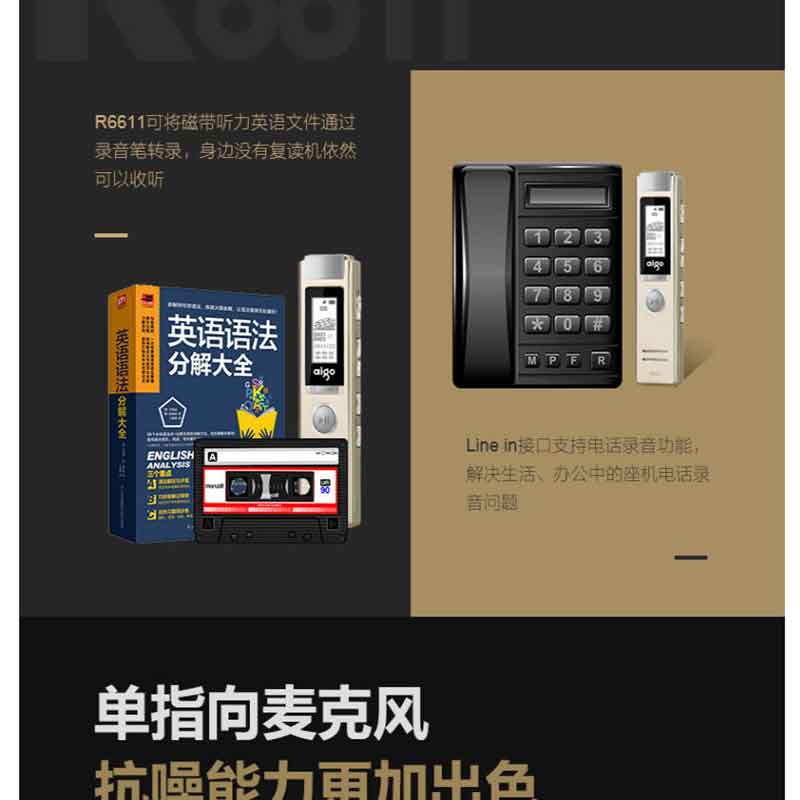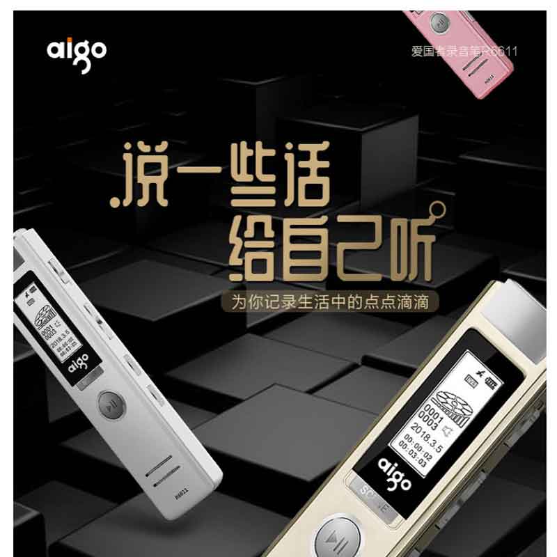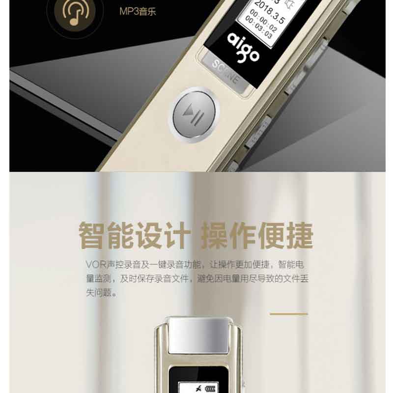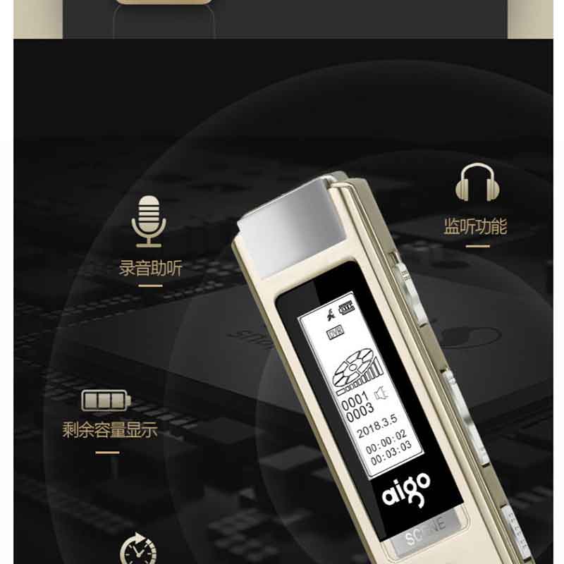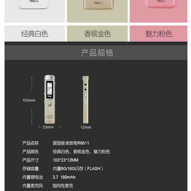 愛國者(aigo) R6611 錄音筆 專業(yè)微型 高清遠距降噪 MP3播放器 學習/會議采訪取證錄音 (香檳金8G)