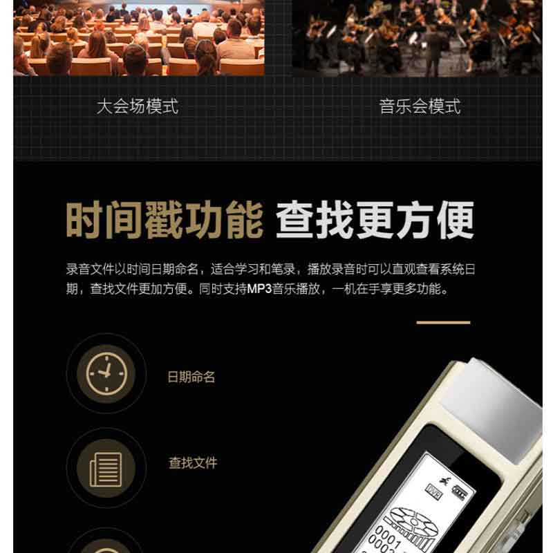 金屬機身,抗噪單指向麥克風,內(nèi)置大功率揚聲器,錄音同步監(jiān)測,支持Line in磁帶轉(zhuǎn)錄、電話錄音,VOR聲控錄音。 ?