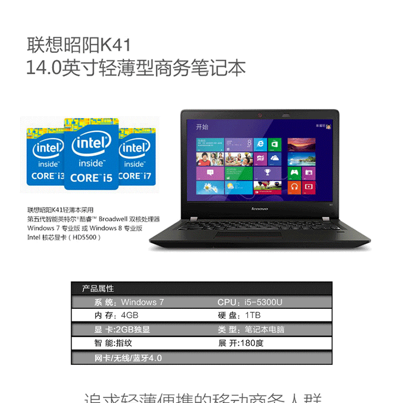 聯(lián)想(Lenovo) 昭陽(yáng)K41-70 商務(wù)筆記本電腦(i5-5300U)14英寸 4G內(nèi)存 1TB硬盤 2G顯卡