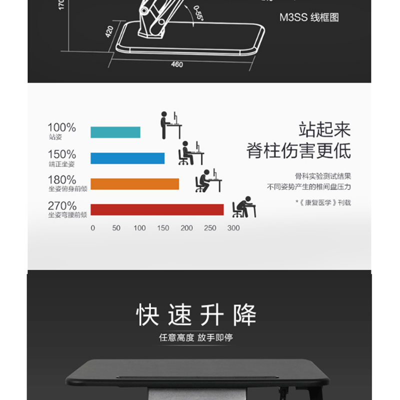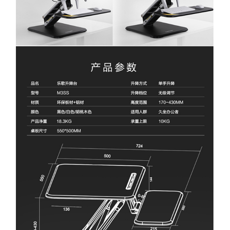 樂歌(Loctek) M3SS 站立式電腦桌/升降臺(tái) 臺(tái)面尺寸500*550mm (黑色)