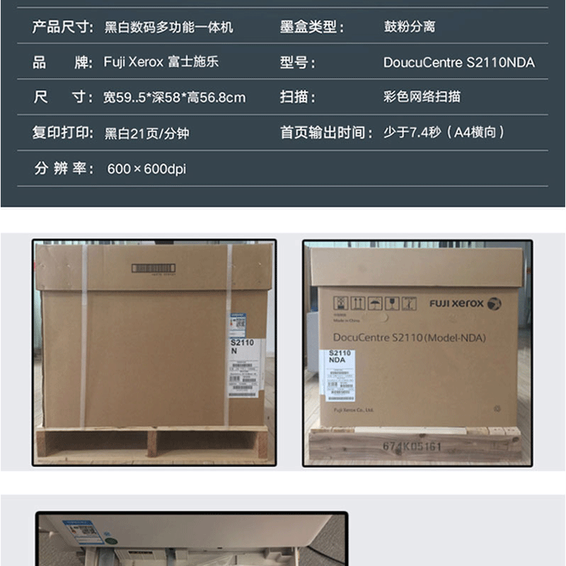 富士施樂(lè)(FujiXerox) S2110NDA A3幅面 黑白激光多功能復(fù)合機(jī) 一體機(jī)(打印/復(fù)印/掃描)