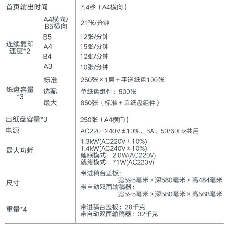 標(biāo)配:自動(dòng)雙面輸稿器,單紙盒,21張/分鐘! ?