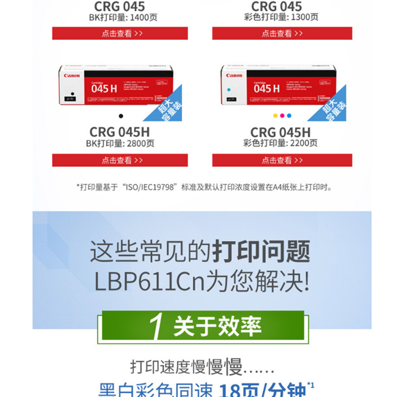 佳能(Canon) LBP611Cn imageCLASS 彩色激光打印機 (網(wǎng)絡打印18頁/分鐘)