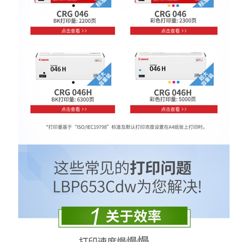 佳能(Canon) LBP653Cdw imageCLASS 彩色激光打印機 (雙面無線27頁/分鐘)