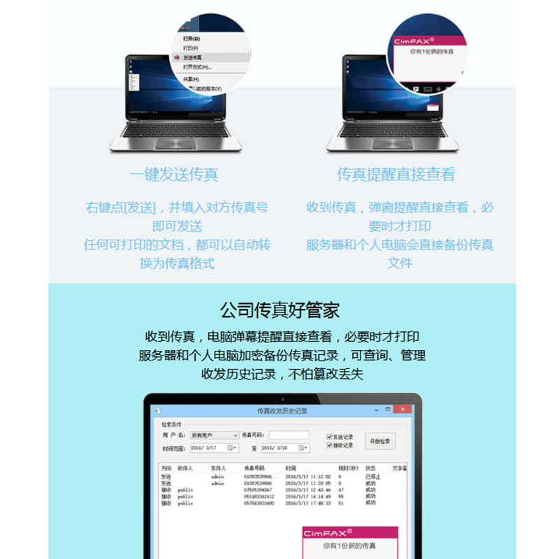 大型企業(yè)、政府單位、公檢法、軍隊(duì)、傳真數(shù)據(jù)多重安全保障,傳真追溯,可綁定256條傳真線路 ?