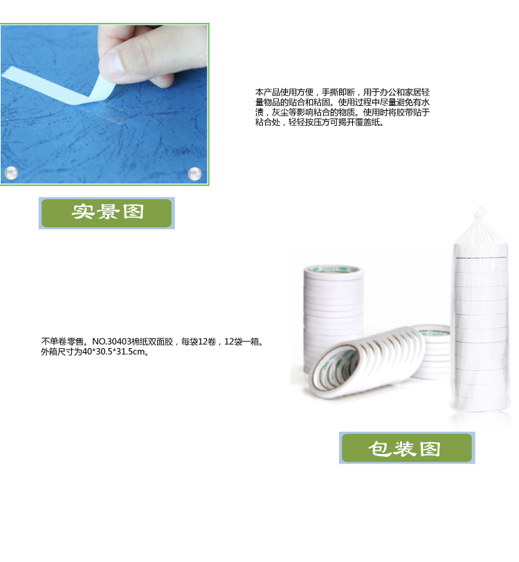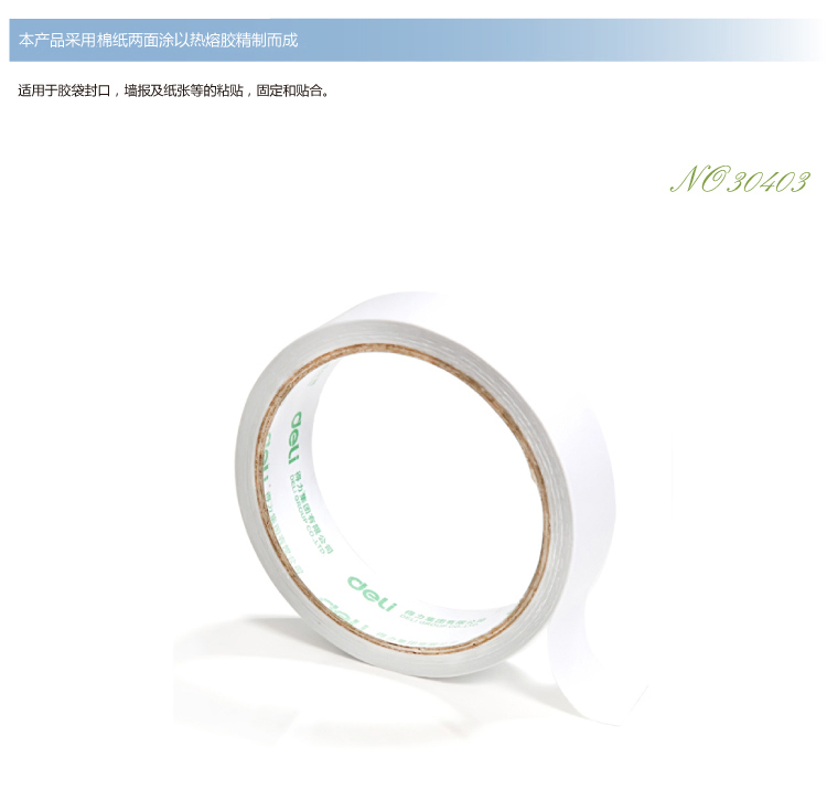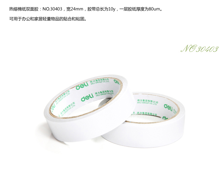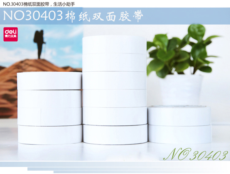 得力(deli) 30403 棉紙雙面膠帶24mm*10y(9.1米) 12卷/袋裝