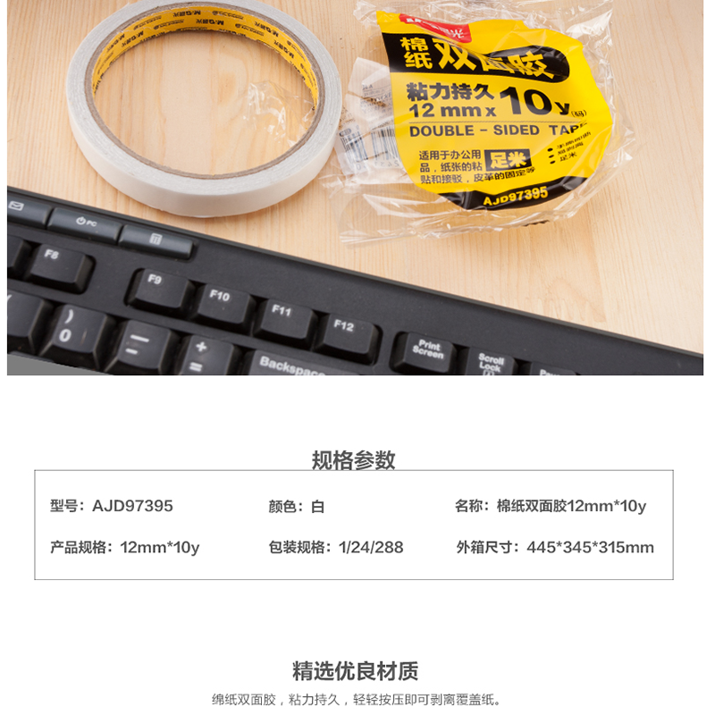 晨光(M&G) AJD97395 棉紙雙面膠帶 12mm*10y 1卷裝