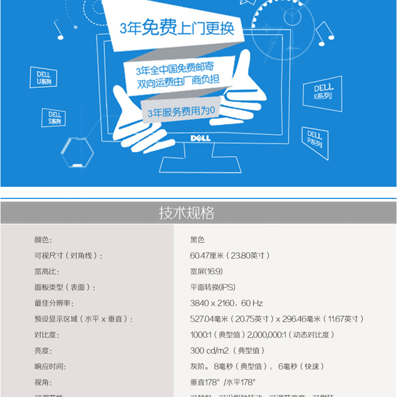 戴爾(DELL) P2415Q 23.8英寸4K超高清旋轉(zhuǎn)升降IPS屏顯示器