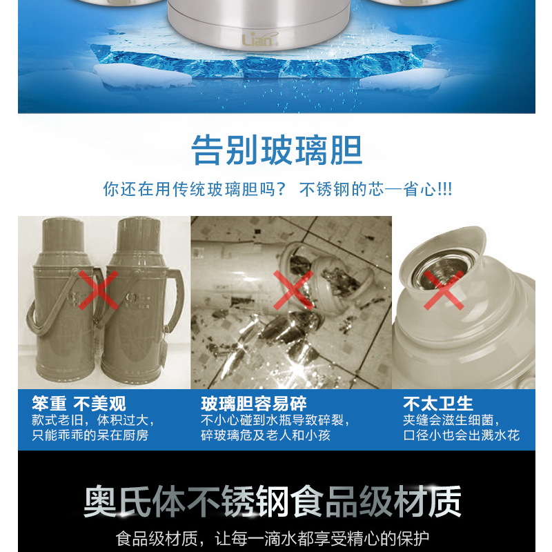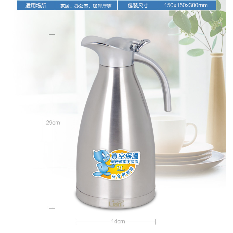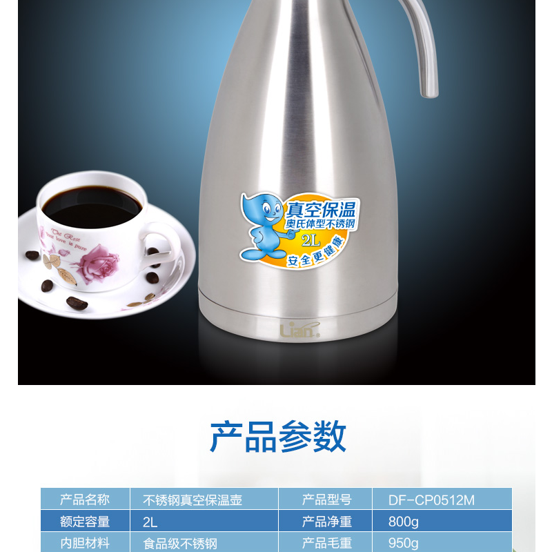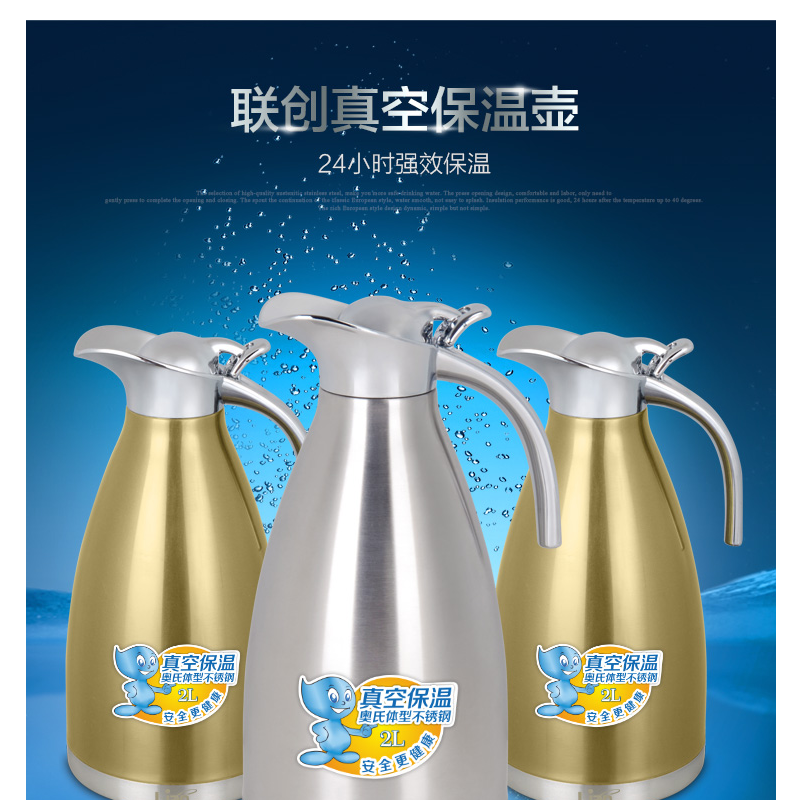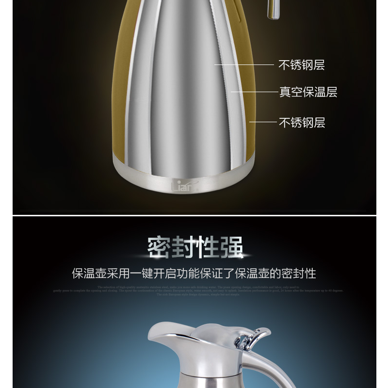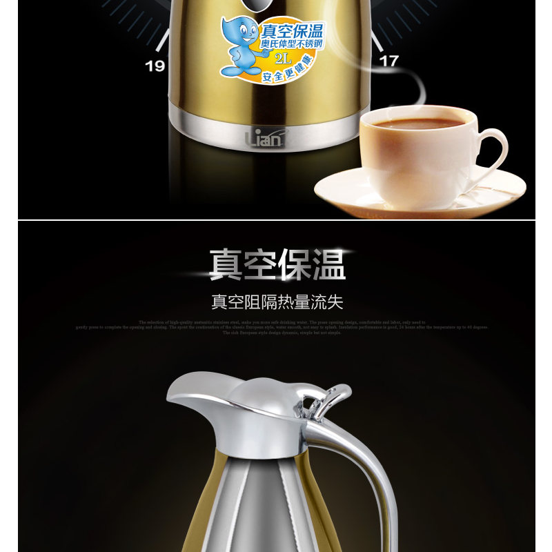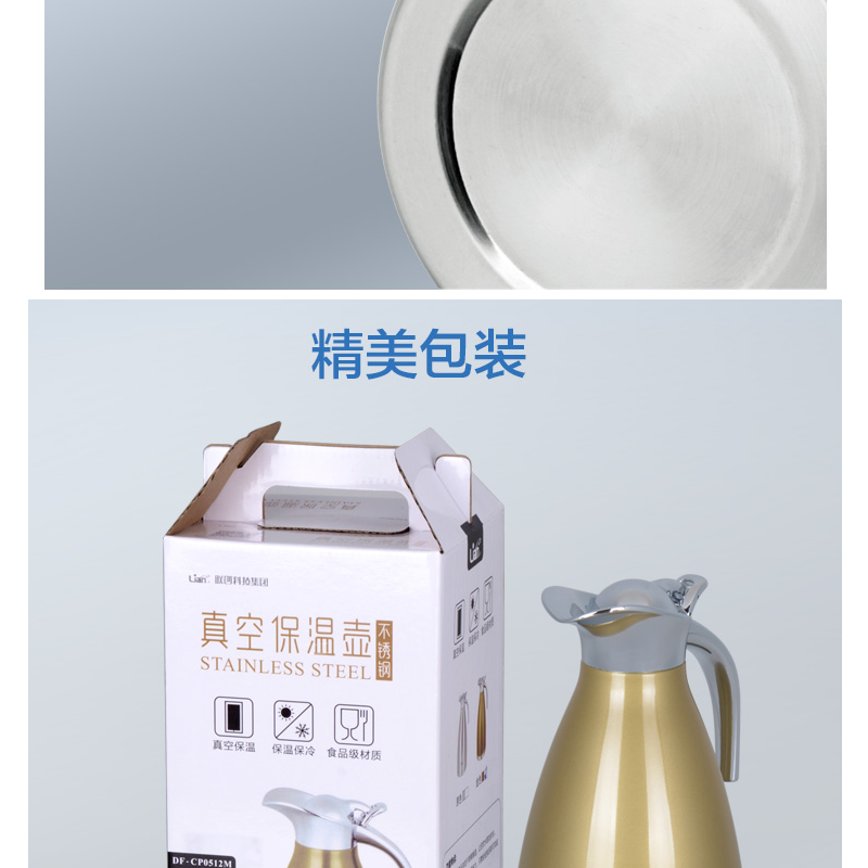 聯(lián)創(chuàng)(Lianc) DF-CP0512M 不銹鋼真空保溫壺/開水壺 超長保溫 2L (金色)