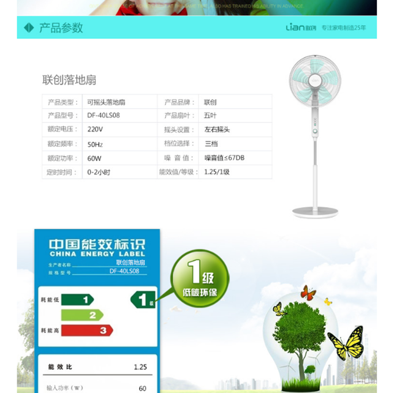 聯(lián)創(chuàng)(Lianc) DF-40LS08Y 五葉柔風落地扇/電風扇 (電子式)