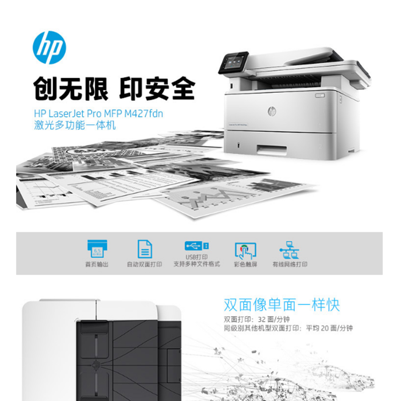惠普(HP) MFP M427fdn 黑白激光多功能一體機 (4合1,網(wǎng)絡,雙面)