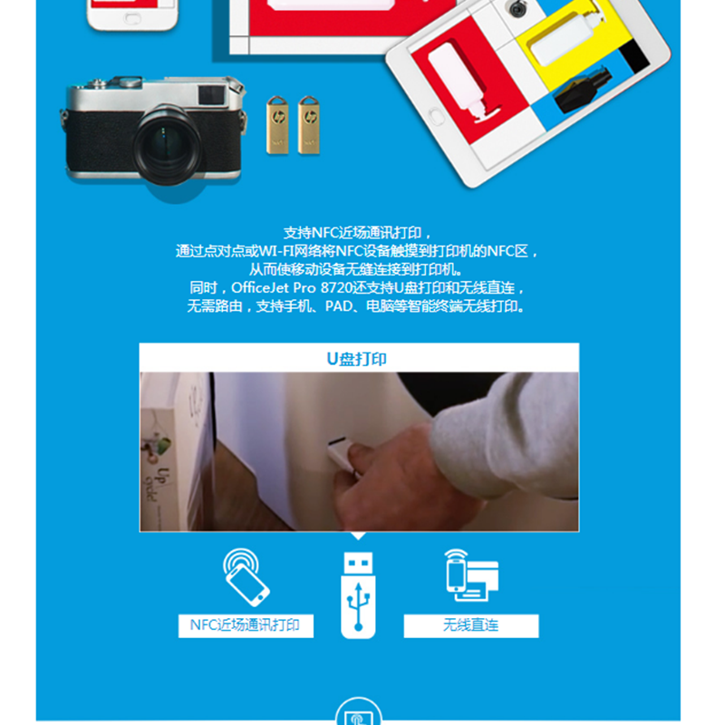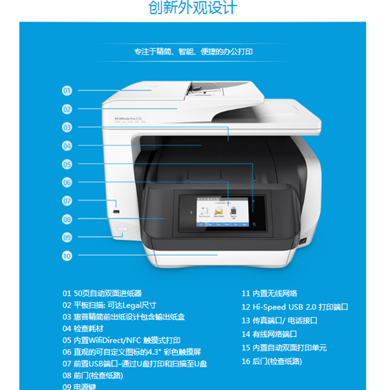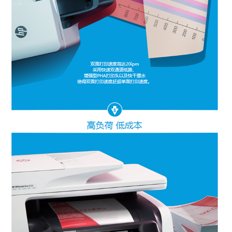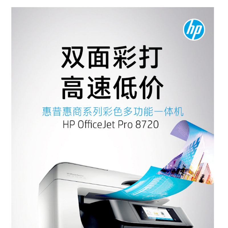 惠普(HP) OfficeJet Pro 8720 噴墨一體機 (無線4合1,白色)