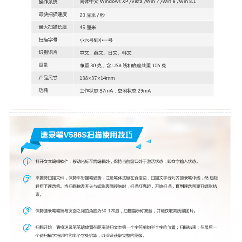 漢王(Hanvon) V586S 輕巧便攜式掃描筆 精準(zhǔn)識(shí)別中、英、數(shù)、日、韓 (性能版)