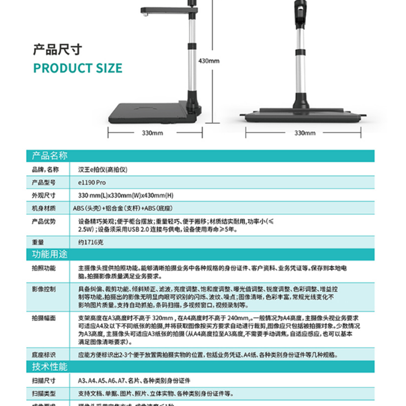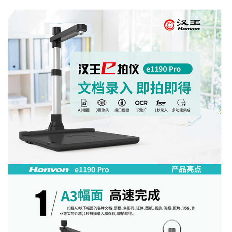 漢王(Hanvon) e1190 Pro 高拍儀掃描儀 (A3幅面,1000萬(wàn)像素,身份證讀卡器)