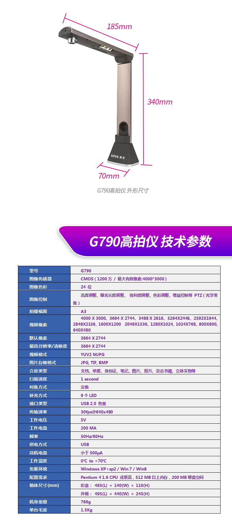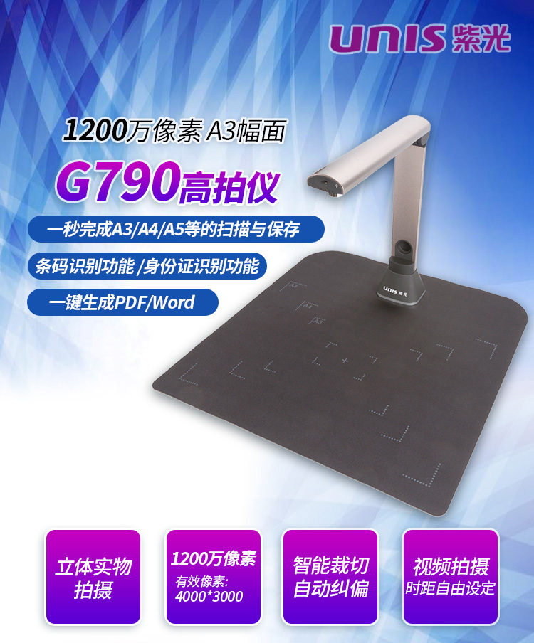 紫光(UNIS) Unispro G790 高拍儀/拍攝儀/掃描儀 (A3/1200萬(wàn)像素,軟底)