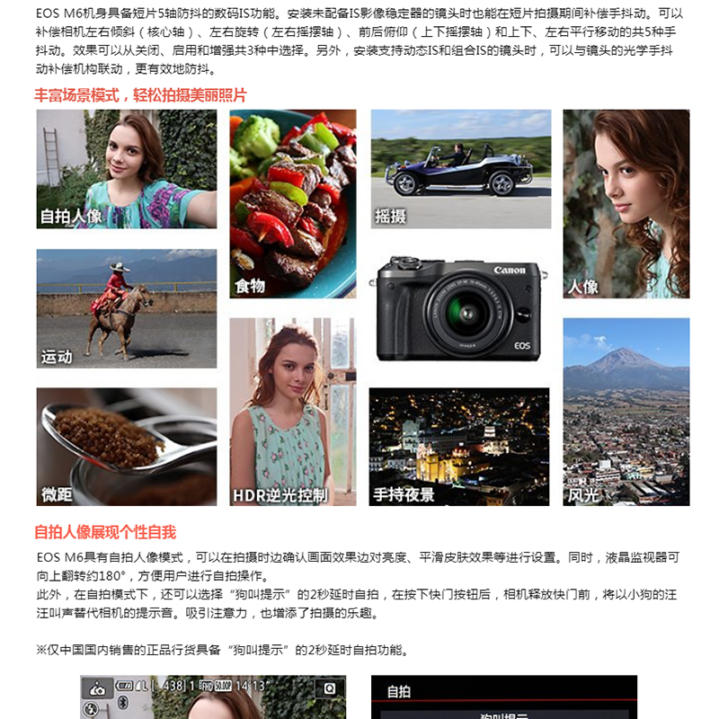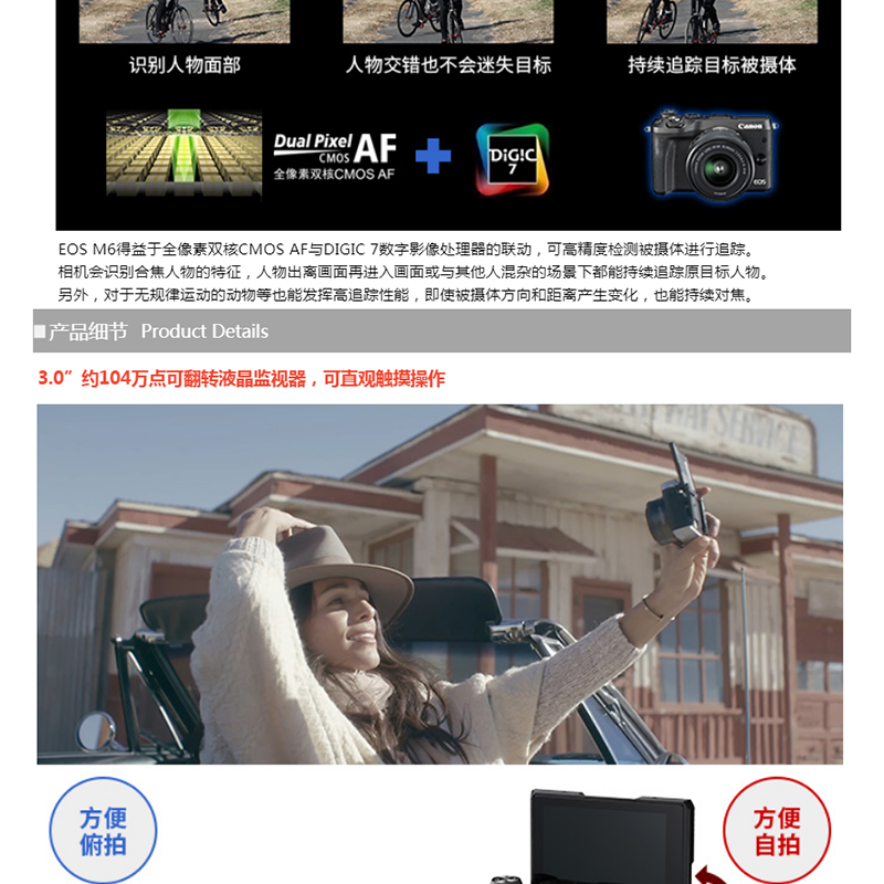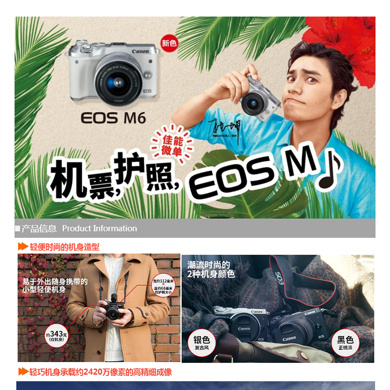 佳能(Canon) EOS M6 可換鏡微單照相機(18-150鏡頭白色套機)