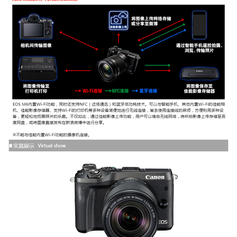 佳能(Canon) EOS M6 可換鏡微單照相機(jī)(18-150鏡頭黑色套機(jī))