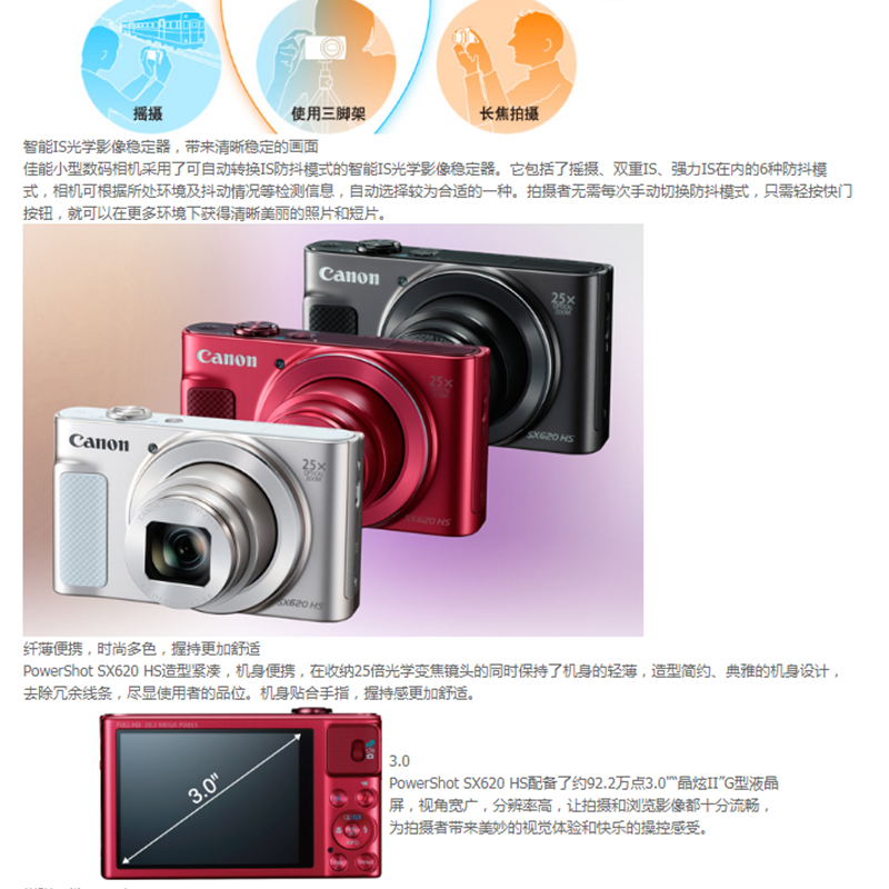 • SX620 HS 紅色 SX620 HS 黑色 SX730 HS 銀色 SX730 HS 黑色 SX720 HS 紅色 SX720 HS 黑色 SX60 HS