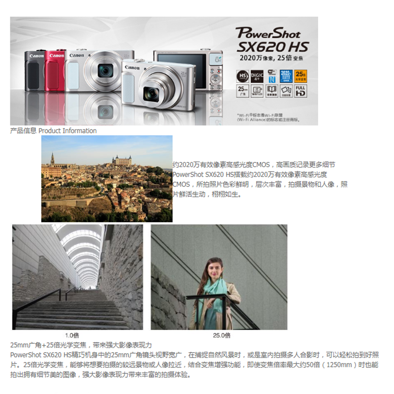 佳能(Canon) PowerShot 數(shù)碼 相機(SX620 HS 紅色)