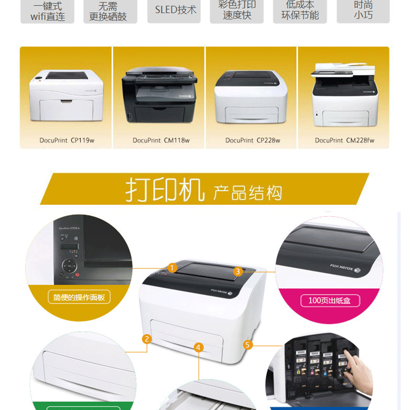 富士施樂(FujiXerox) CP228w 彩色激光打印機