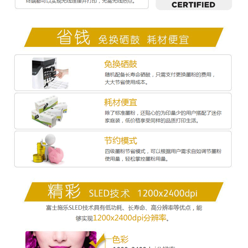 每分鐘18頁的彩色輸出 1200X2400dpi的超高分辨率!WIFI直連使您輕松實現(xiàn)移動端的夢幻打?。??