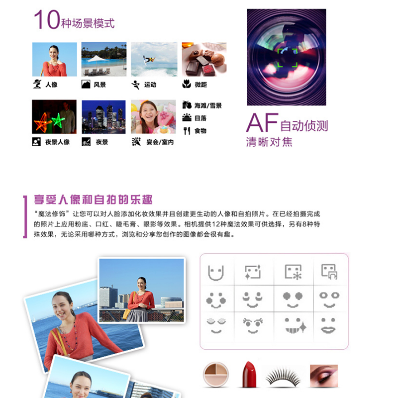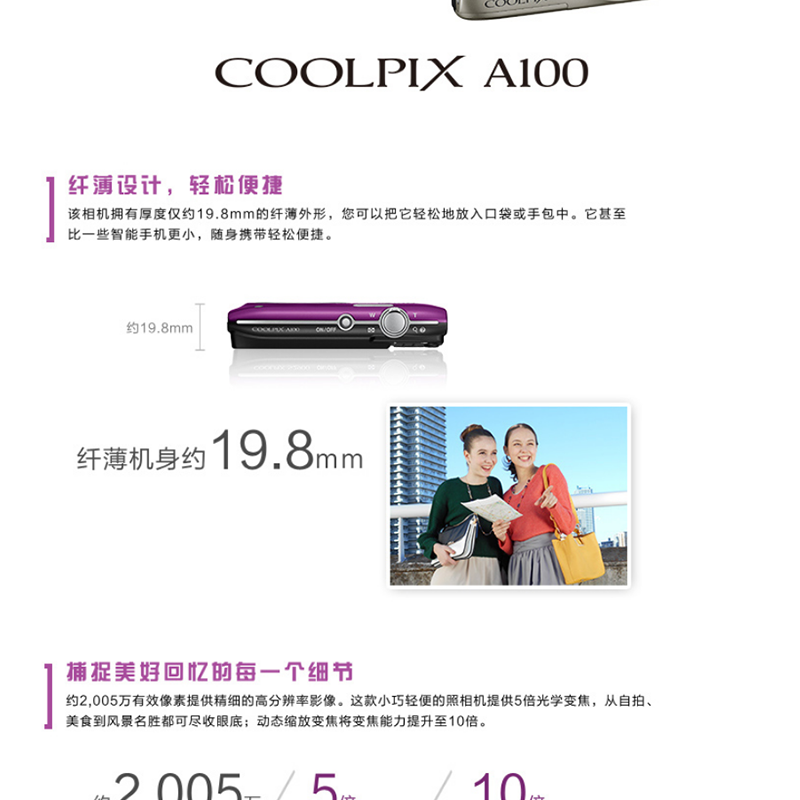 方便攜帶,2005萬像素, 2.7英寸屏, 5倍光學(xué)變焦 ,26mm廣角 ?