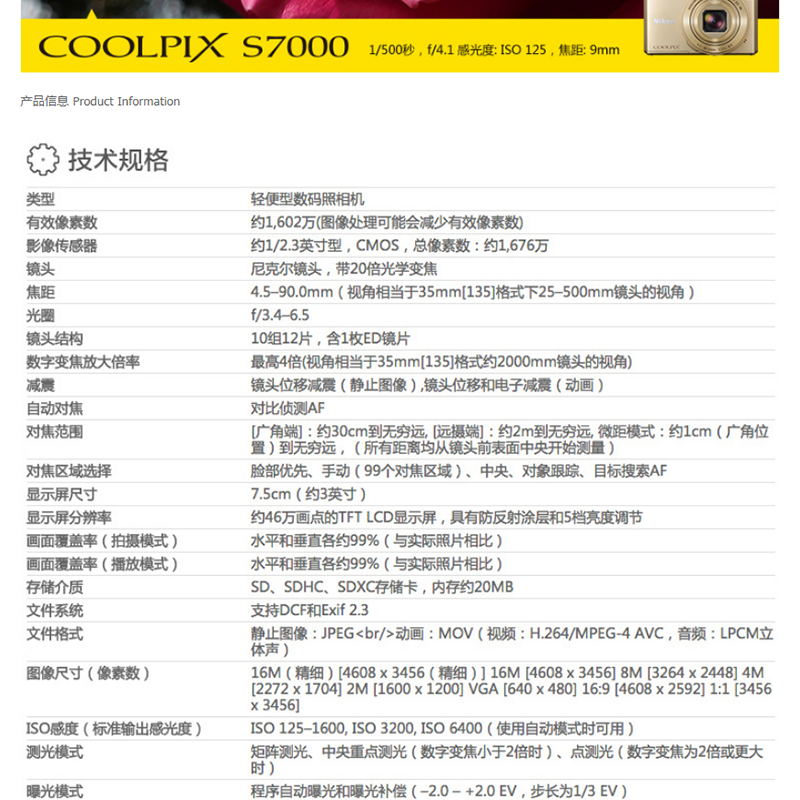 尼康(Nikon) COOLPIX S7000 數(shù)碼照相機(白色)