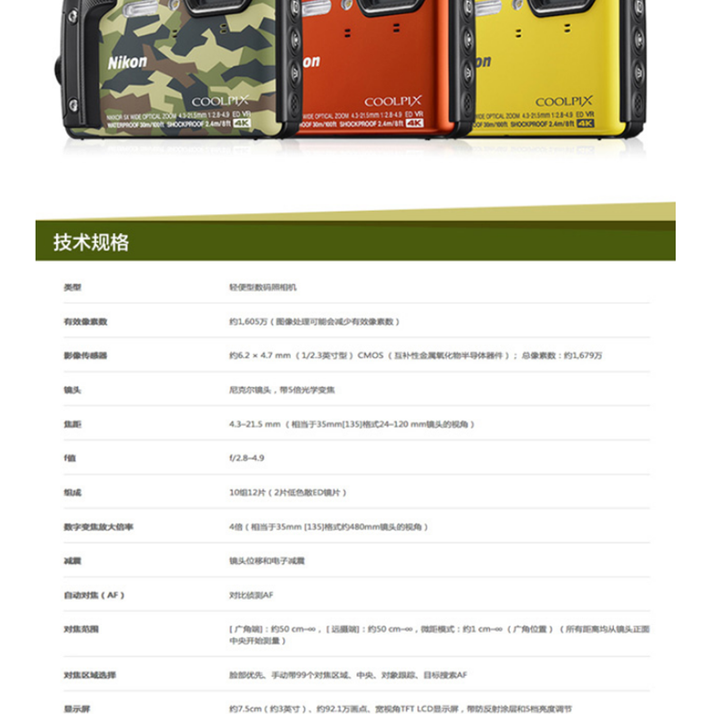 尼康(Nikon) COOLPIX W300s 數(shù)碼相機(橙色)