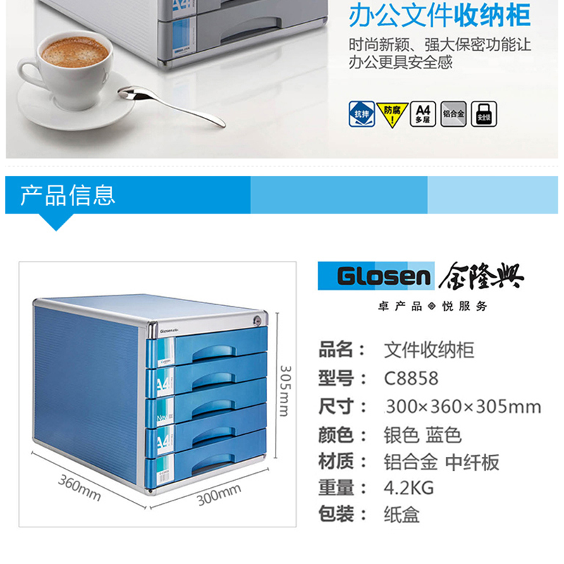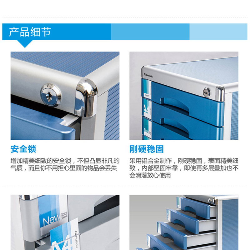 金隆興(Glosen) C8858 鋁合金五層文件柜 鋁合金商務(wù)資料柜整理柜桌面抽屜柜 藍(lán)色