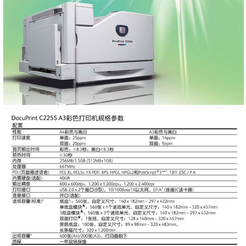 富士施樂(FujiXerox) C2255 A3幅面 LED彩色打印機